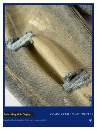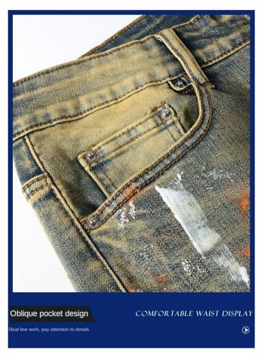 More information about Jeans Pants Trousers Denim Men Street Trendy Ripped Spray Paint Dot Retro Personalized Elastic Slimming Broken Hole Casual Small Foot(Blue,31)
