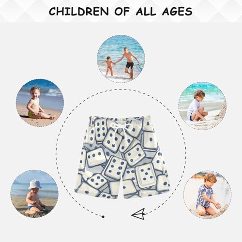 Boys Beach Board Shorts Blue Dominoes Game Swim Trunk Teen Swimwear 8-16Y 2