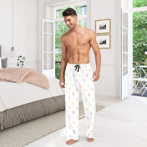 Mens Cotton Pajama Pants Sleep Lounge Pj Bottoms Sleepwear with Pockets Drawstring S Flower 5