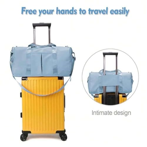 XZG Travel Duffel Bag,Sports Waterproof Tote Gym Bag For Women Men with Shoe Compartment & Wet Pocket, Airplane Travel Essentials for Flying, Weekender Bag Luggage Bag with Trolley Sleeve 5