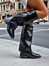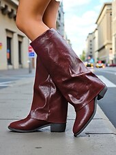 More information about Women's Burgundy Wide Calf Knee High Boots with Low Heel, Retro Western Style Fashion Boots for Daily Wear & Outdoor Autumn Outfits
