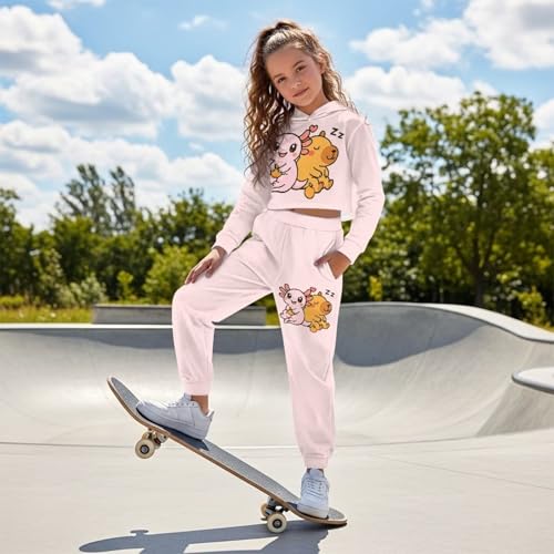 Long Sleeve Crop Top Hoodie and Pants Set Girls 4-13Y Kids Comfy Sportswear 7