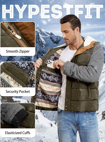 HYPESTFIT Mens Winter Jacket Puffer Fleece Lining Warm Windproof Thicken Ski Parka Coat 1
