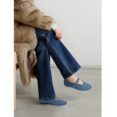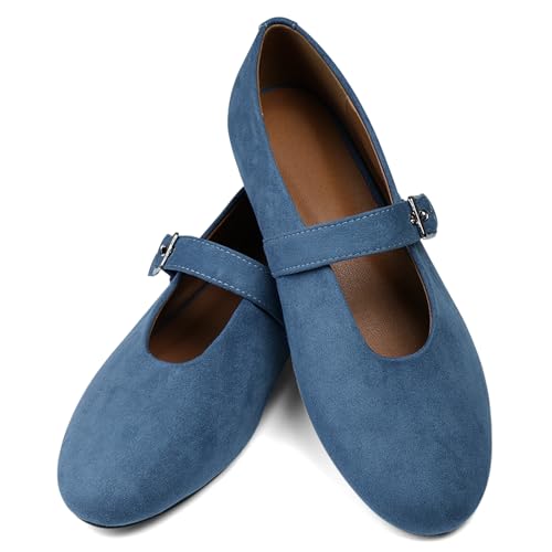 Mary Jane Ballet Flats for Women Buckle Strap Round Toe Suede Wide Width Flats Casual Ballerina Shoes 6