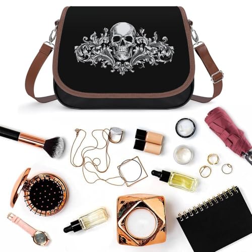 Skull Baroque Goth Floral Women Crossbody Purse Leather Messenger Bag Handbags Shoulder Strap Bags 7