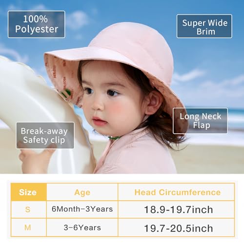 Baby Girl Sun Hat with UPF 50+ Outdoor Adjustable Beach Hat with Wide Brim Toddler Bucket Hat 6