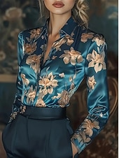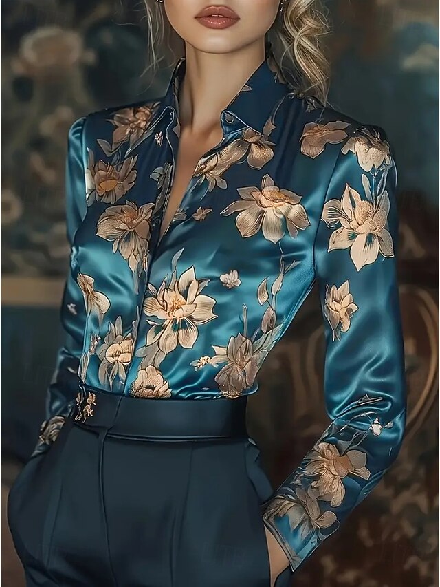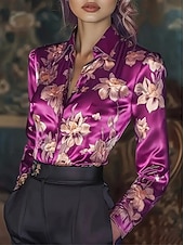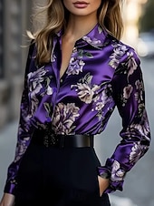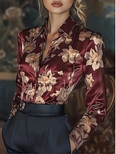 More information about Women's Work Shirt Floral Graphic Elegant Stylish Casual Long Sleeve Shirt Collar Regular Tops Work Party Evening Wear Daily Wine Blue Purple Fuchsia Spring, Fall, Winter, Summer