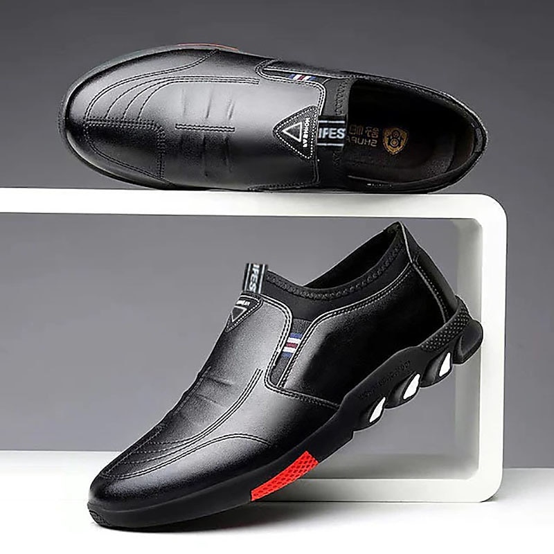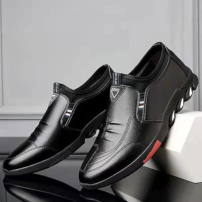 Highlights [Fabric] Crafted from premium PU material, these men's loafers feature a sleek leather-like finish that offers a smooth and polished appearance. The warm, earthy tones complement any wardrobe, adding a touch of sophistication to your casual or semi-formal attire. [Fit] Designed in a classic slip-on style, these shoes offer a relaxed yet snug fit. The elastic side panel ensures easy wearability while maintaining a comfortable grip, perfect for all-day wear. [Design Highlights] Accented with subtle stitching details, these loafers boast a contemporary and modern look. The outsole is designed with multiple grips for excellent traction and supportive walking, while decorative elements add to the shoe’s stylish appeal. [Occasions] Ideal for a range of settings from casual outings to semi-formal occasions, these loafers are versatile and stylish. Whether it's a social event or a relaxed day out, they provide both functionality and fashion, ensuring you always look your best. [Size Range] Available in a range of sizes from 39 to 44, these loafers cater to various foot sizes, making them a versatile choice for any man's collection.