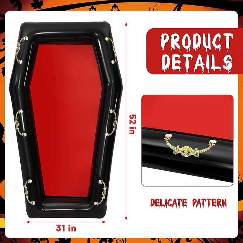 1 PC Inflatable Outdoor Festival Decorations Essential! Inflatable coffin - 52*31inch Extra Large PVC Party Supplies for Halloween Decoration Outdoor Games and Beverage Storage Perfect for Summer P 6