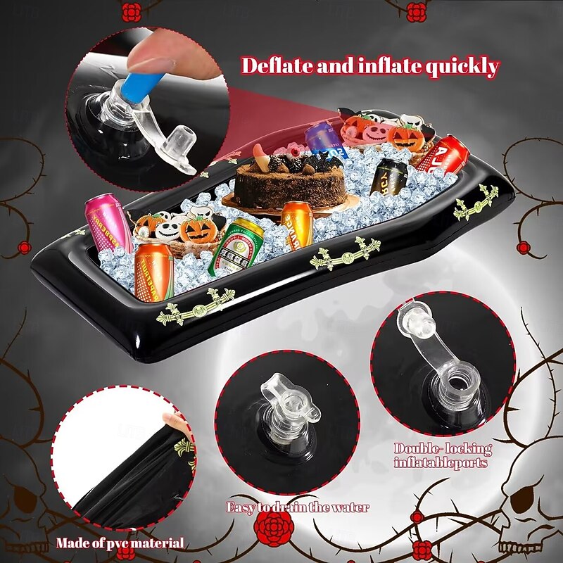 1 PC Inflatable Outdoor Festival Decorations Essential! Inflatable coffin - 52*31inch Extra Large PVC Party Supplies for Halloween Decoration Outdoor Games and Beverage Storage Perfect for Summer P 9