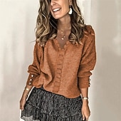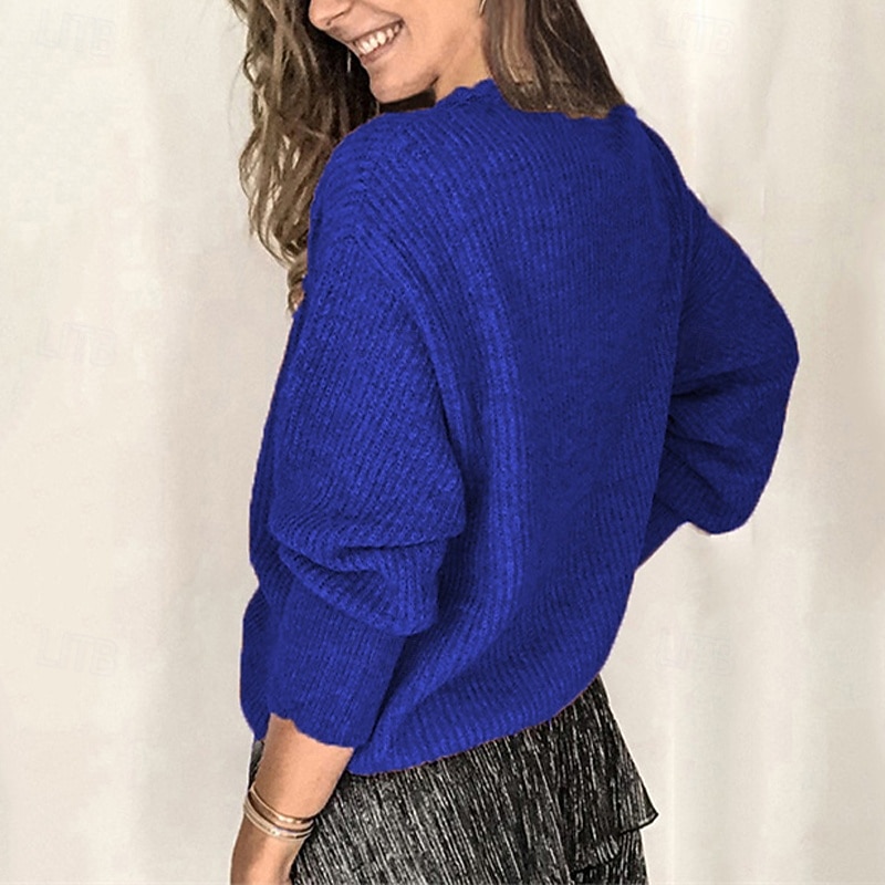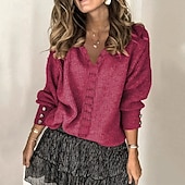 More information about Women's Sweater Fashion Solid Color Ribbed V Neck Knitted Long Sleeve Regular Tops Knit Holiday Going out Weekend Wine Red Fall