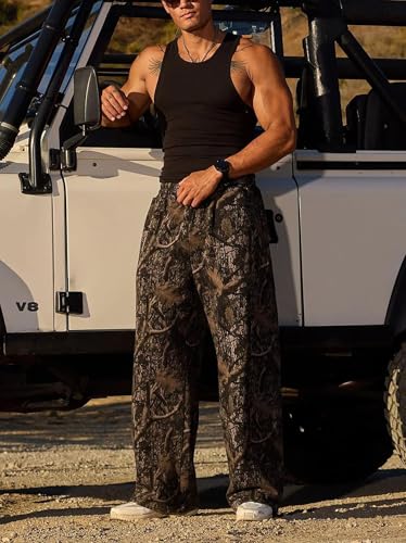 • Features: Inspired by the wild nature forest style, these athletic gym joggers pants for men feature a realistic branch and leaf pattern print design, making these men camo graphic print sweatpants even more special, and the pattern printing is clear and does not fade. Y2K style, mens elastic waist wide leg sweatpants, side pockets to store keys, cards, headphones, etc