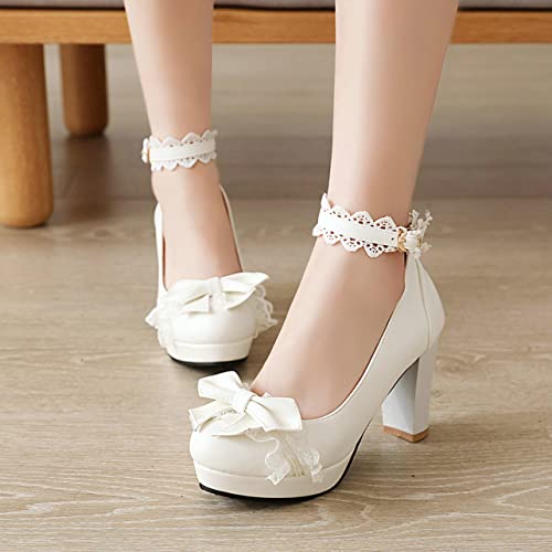 UniqueStride Womens Platform Chunky Block High Heel Pumps Ankle Strap Sweet Bow Buckle Closed Toe Shoes 7