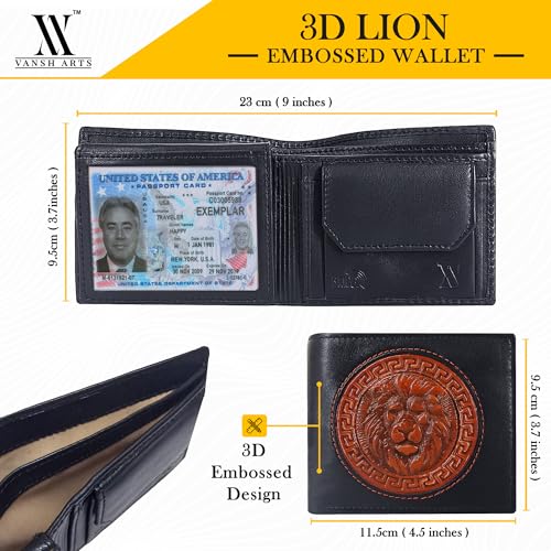 • MAJESTIC 3D LION DESIGN WITH PREMIUM LEATHER COMBINATION: Command respect with our meticulously handcrafted 3D lion head embossed on a genuine full grain tan leather patch, beautifully contrasted against premium napa leather body. Each wallet showcases a dimensional lion head with incredible detail—from the textured mane to the powerful features—creating a striking two-tone design that embodies both nobility and sophisticated style for the distinguished gentleman.