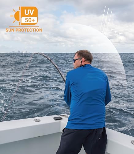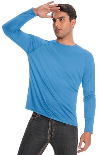 Men's Sun Protection Shirts UPF 50+ UV Long Sleeve Rash Guard Shirts Lightweight fast Dry for Fishing Swimming Running Hiking Blue XL