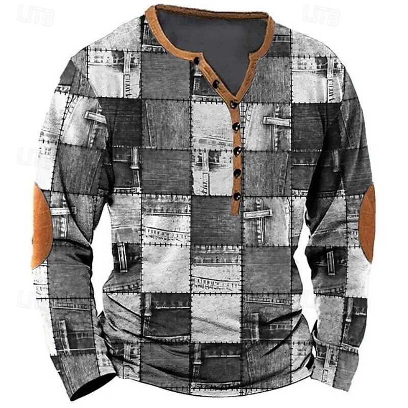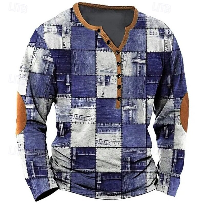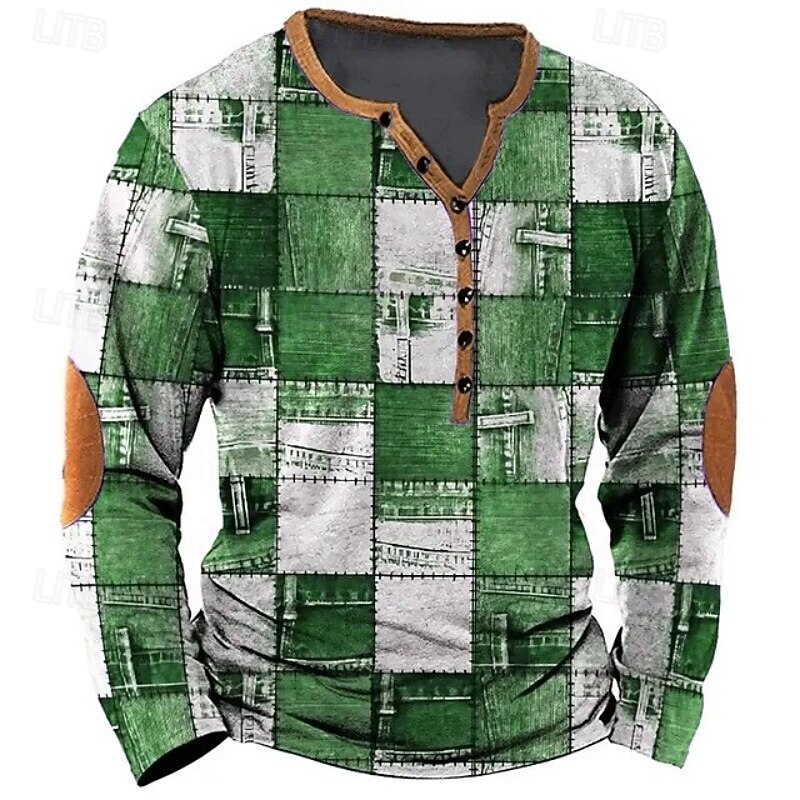 More information about Men's Geometric Patchwork T Shirt Henley Shirt Tee Long Sleeve Vintage Designer Stylish Outdoor Casual Daily Spring & Summer All Seasons Blue Blue Brown Green Gray Henley Henley T-Shirt