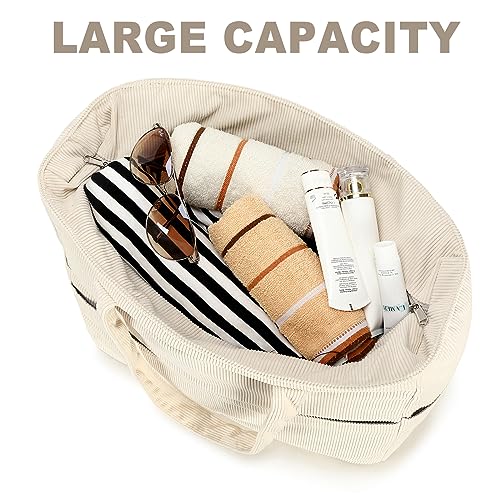 • Portable and Practical Design: : This beach tote features corduroy fabric, not waterproof, with a sturdy structure, light weight, foldable, top zipper closure. Please note that corduroy material is prone to leaving dirt and stains. We recommend using mild detergent for local cleaning instead of machine washing to maintain its quality.