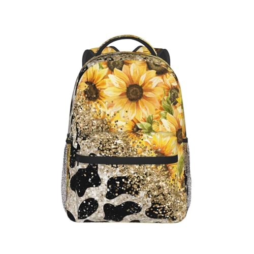 Sunflower Cow Print 15 Inch Backpack for Men Women Adjustable Laptop Backpacks Shoulder Bag for Travel Hiking Outdoor 1