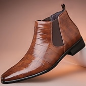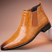 More information about Men's Tan Genuine Faux Leather Chelsea Boots with Elastic Side Panels and Smooth Finish, Elegant Dress Ankle Boots for Business, Parties and Formal Occasions