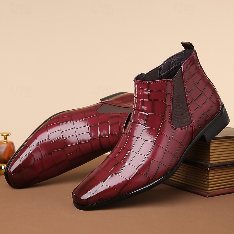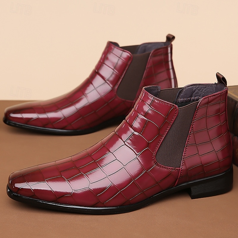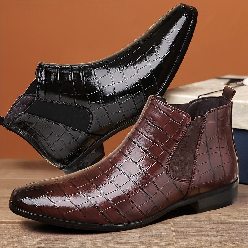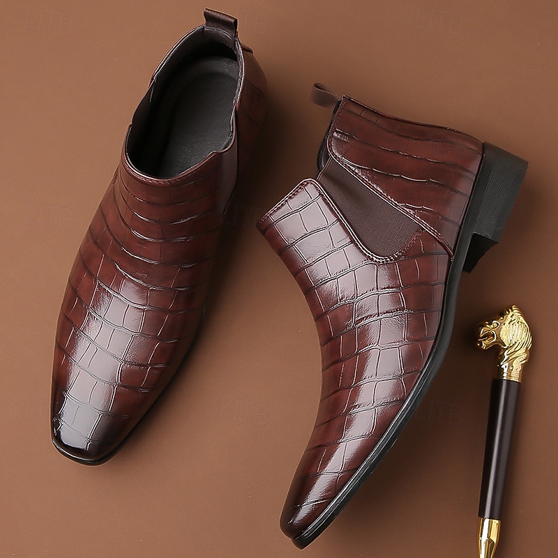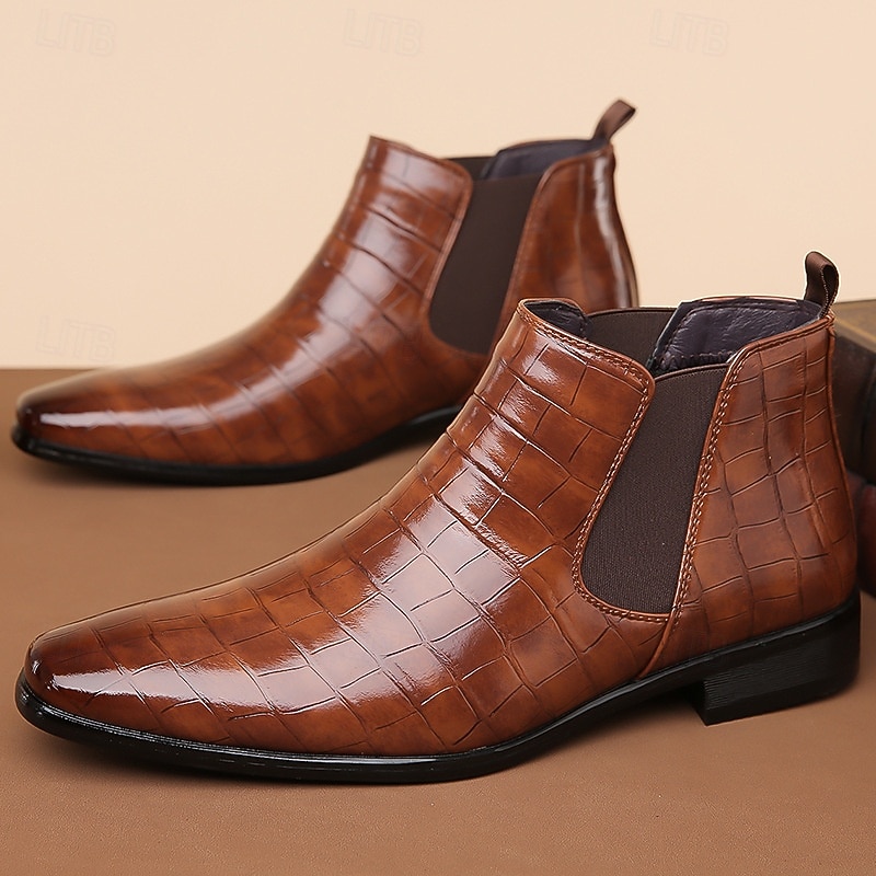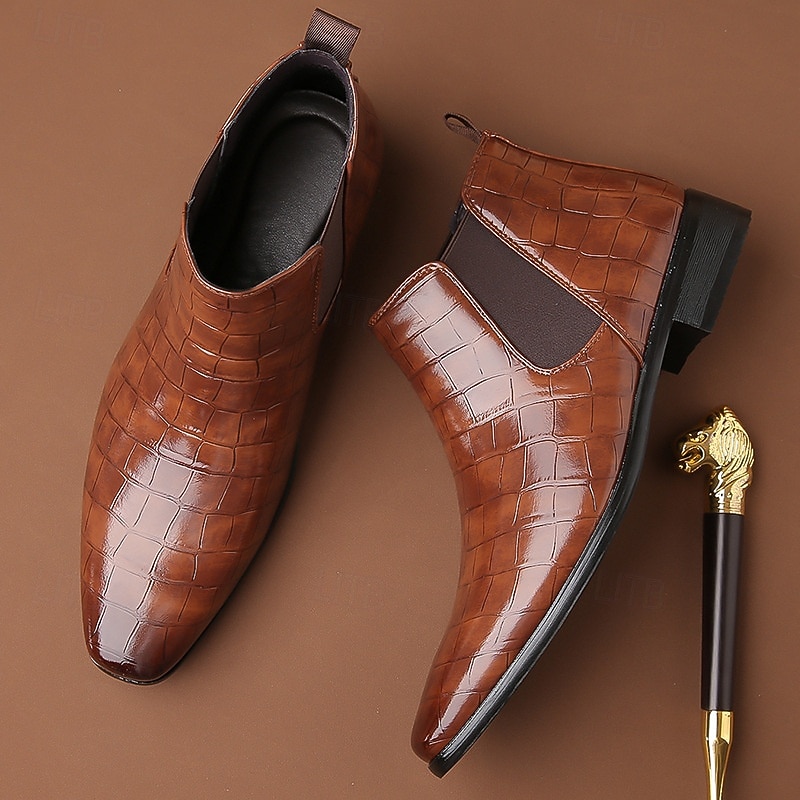 Men's Tan Genuine Faux Leather Chelsea Boots with Elastic Side Panels and Smooth Finish, Elegant Dress Ankle Boots for Business, Parties and Formal Occasions 27