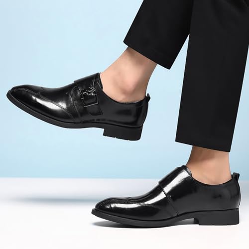 Men's Leather Monk Strap Oxford Dress Shoes Classic Cap Toe Derby Shoes Fashion Business Formal Shoes Breathable Wedding Shoes 6