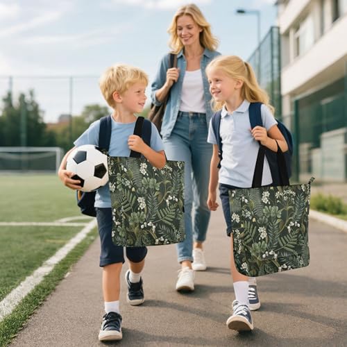 linqin Book Tote Bag for Boys Girls Women, FLOWERs Berries Fern and Leaves Water-resistant Reusable Book Bag Grocery Bag with Zipper for School Shopping Travel 6