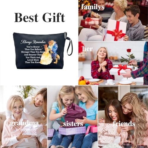 You Are Braver Stronger Funny Canvas Zipper Makeup Bag, Travel Accessories Storage Toiletries Bag, Beauty Beast Inspired Gifts, Gifts for Beauty Beast Movie Fans Sister Friend Daughter 4