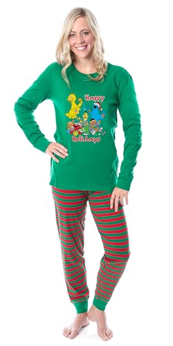 • CLASSIC CHRISTMAS DESIGN - This pajama set-top features several characters from the wonderful world of Sesame Street. Elmo, Big Bird, Cookie Monster, and many more are all decorating a Christmas Tree! Around them are the words "Happy Holidays"