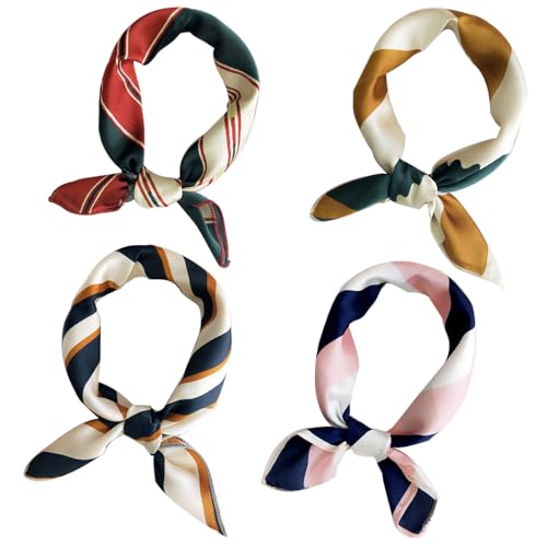 Women Girls Square Scarf, Small Hair Scarf Square Head Neck Scarf Hair Tie Band,4 pcs 4