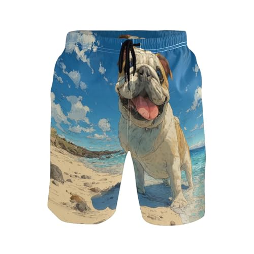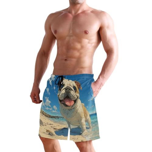 Men's Swim Trunks fast Dry Swimming Shorts with Pocket Beach Bulldog Happy Scene Swimsuit Trunks