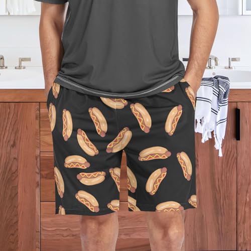 HOT ! Funny Food Print Mens Pajama Shorts Comfy Sleep Lounge Pants Sleepwear, Drawstring & Pockets Pj Bottoms