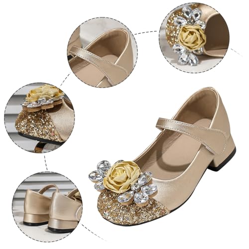 IWIHMIV Toddler Girls Dress Low Chunky Heel Shoes Flower Girls Mary Jane Flat Leather Shoes for Party Wedding 4