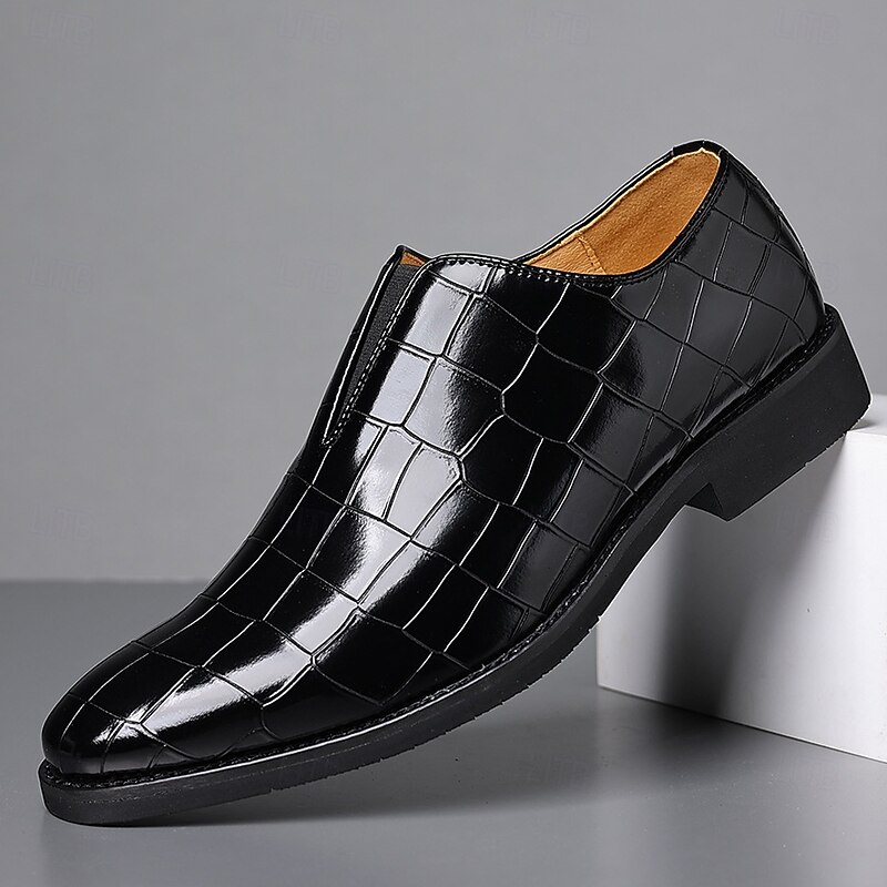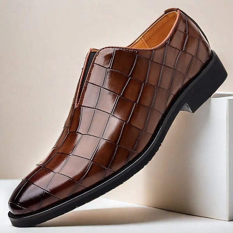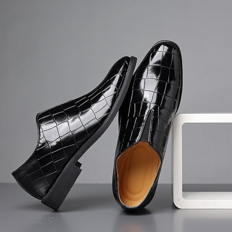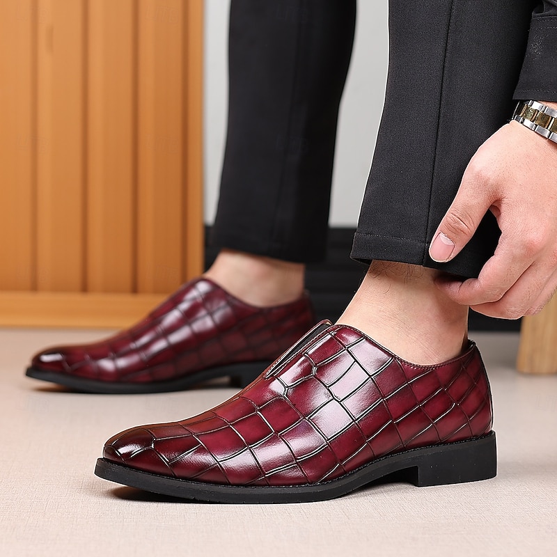 HOT ! Men's Burgundy Crocodile Pattern Faux Leather Slip-On Shoes – Elegant Casual Shoes for Smart-Casual Events