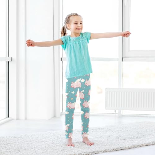 Cute Flying Pig Girls' Leggings Toddler Doodles Cute Wings Stars Kids Yoga Pants Dance Active Tights 4T 7