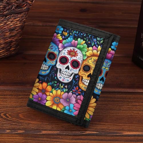 HOT ! Day of The Dead Skull Flower Trifold Wallet Slim Credit Card Holder Minimalist Front Pocket Money Clip for Women Men
