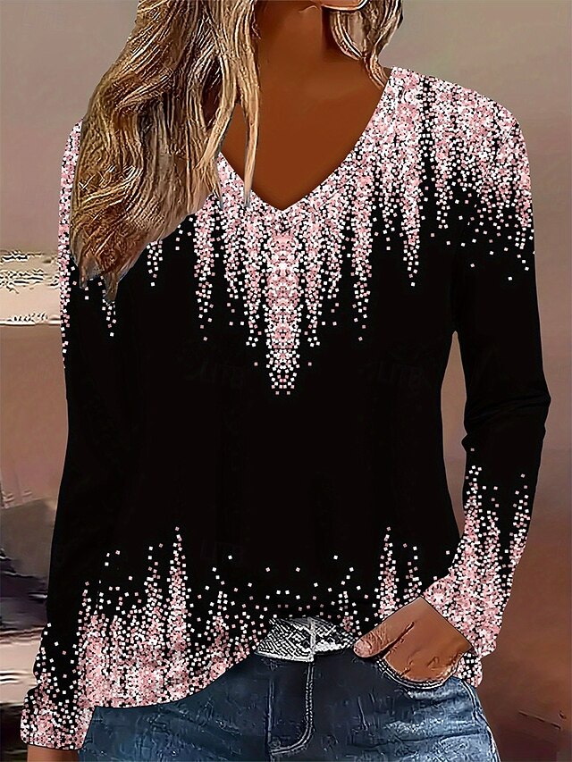 More information about Women's T Shirt Ombre Graphic Abstract Vintage Stylish Classic Long Sleeve V Neck Regular Tops Daily Print Pink Spring Fall Winter