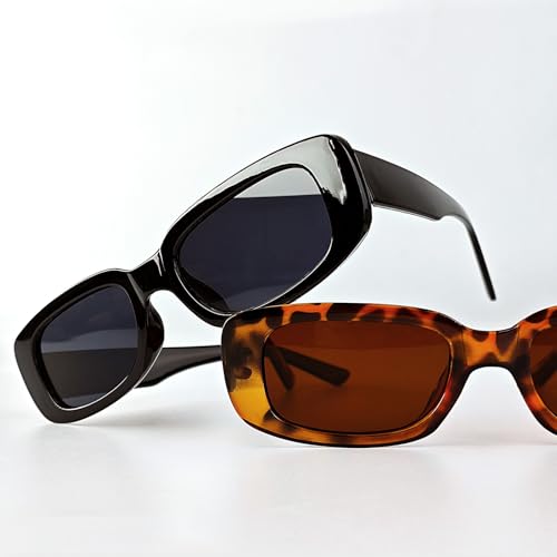 HOT ! 2PCS Rectangle Sunglasses for Women Men Trendy Y2k Retro 90s Vintage Sun Glasses UV Protection Square Frame