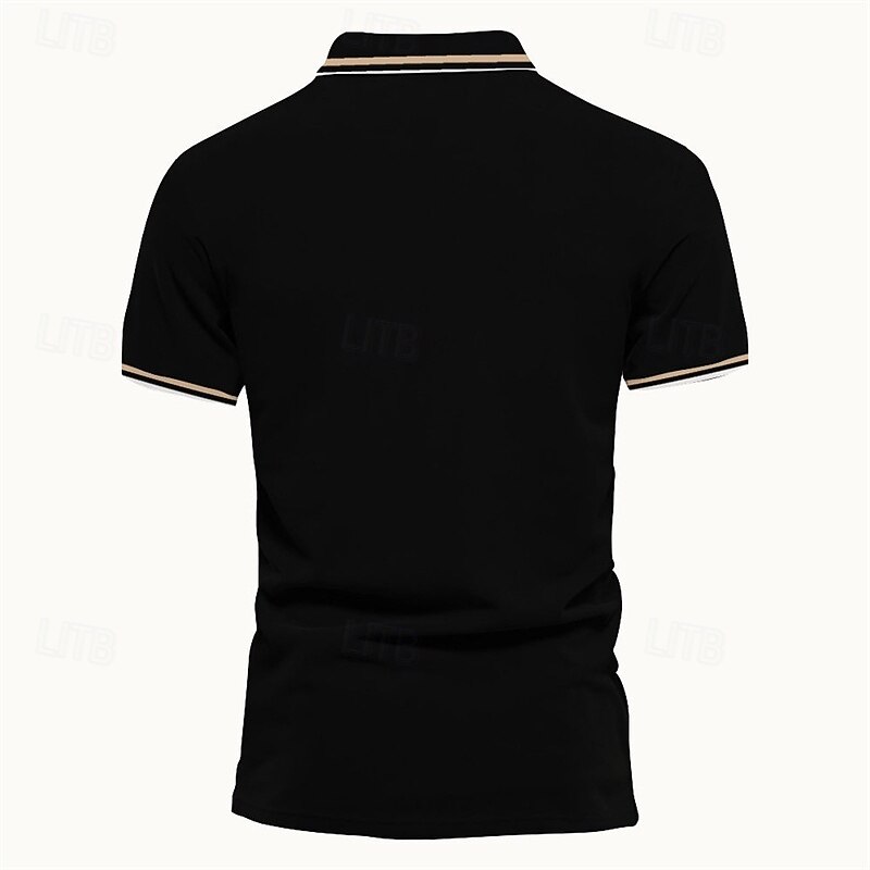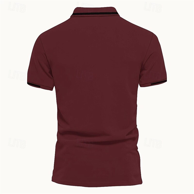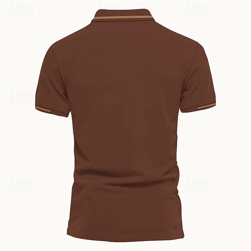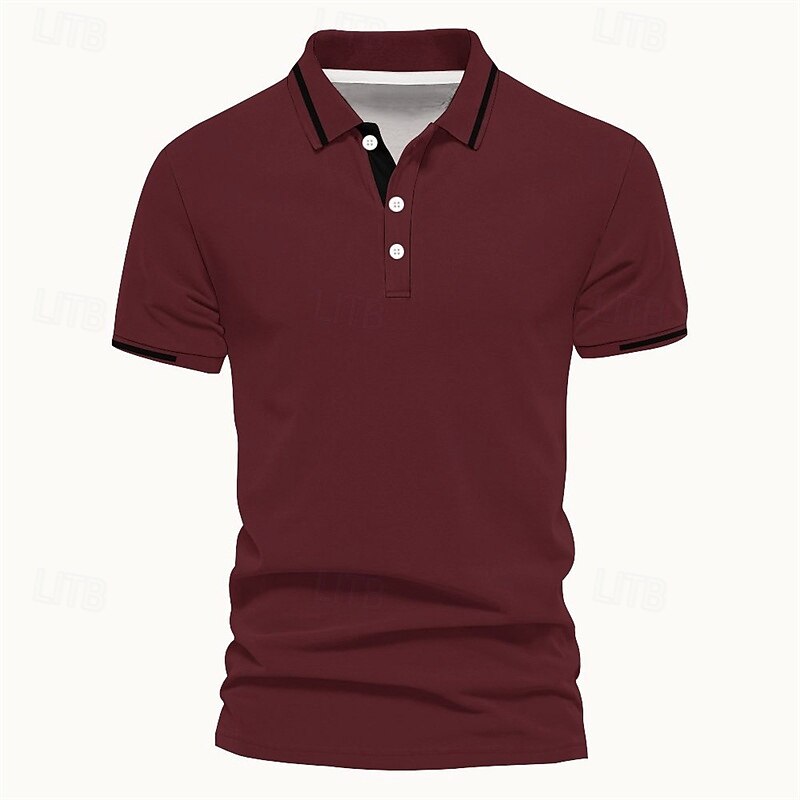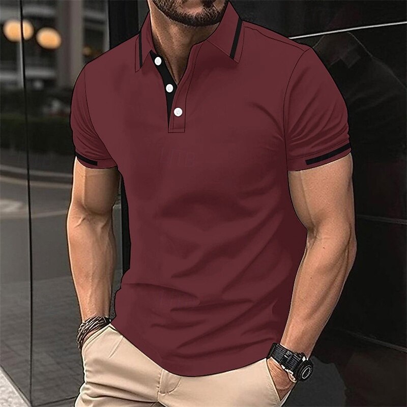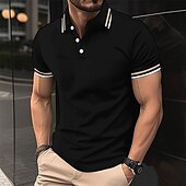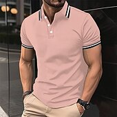 More information about Men's Polo Button Up Polos Casual Sports Lapel Short Sleeve Fashion Basic Stripes Patchwork Buttons Summer Spring Black Pink Wine Brown Polo