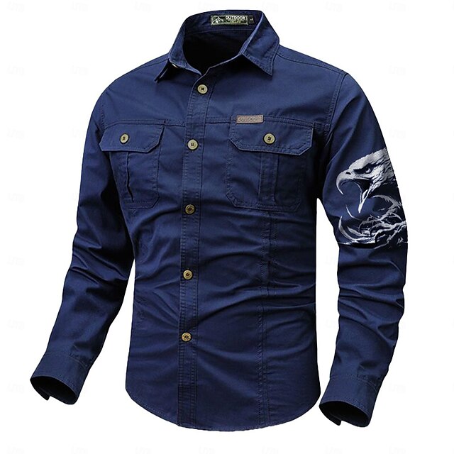 Men's Eagle Work Shirt Western Shirt Cargo Shirt Long Sleeve Casual Tactical Sports & Outdoor Going out Winter Spring &  Fall Turndown Print Black Grey Black White Army Green Red 12