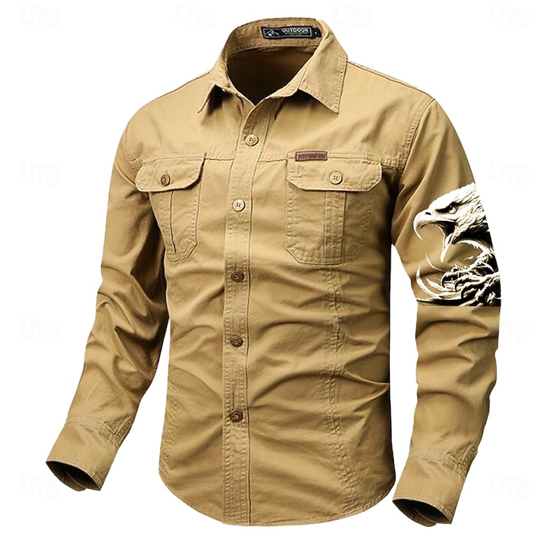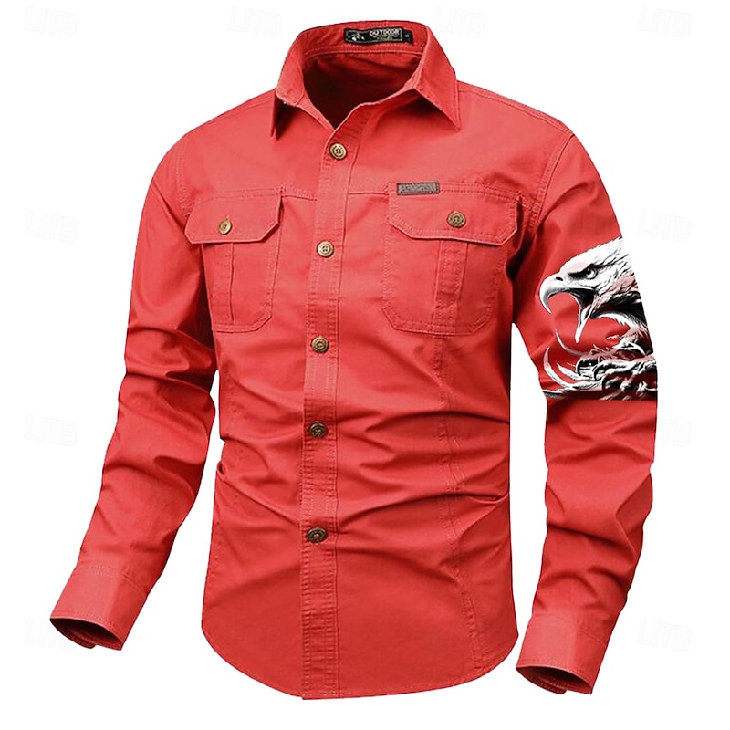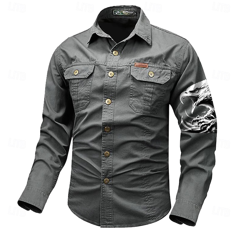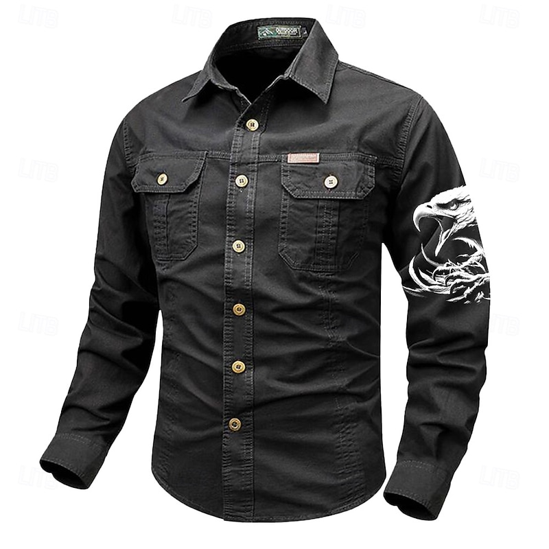 More information about Men's Eagle Work Shirt Western Shirt Cargo Shirt Long Sleeve Casual Tactical Sports & Outdoor Going out Winter Spring & Fall Turndown Print Black Grey Black White Army Green Red
