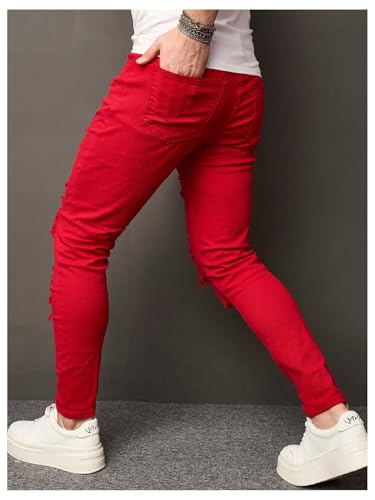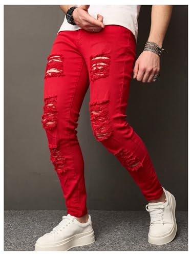 More information about WDIRARA Men's Denim Splash Ink Print Ripped Raw Hem Distressed Skinny Jeans Pants with Pockets