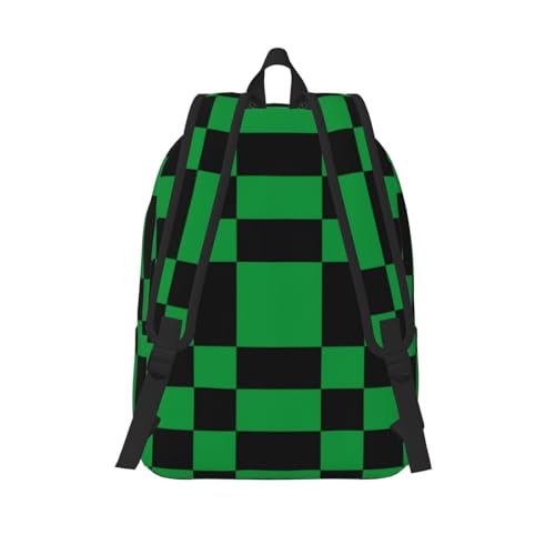 HOT ! Black Green Checkered Lightweight Canvas Backpack, Backpack For Women Men Couples, Travel Laptop Backpack