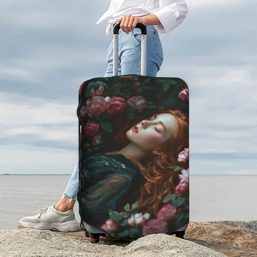 Rose Flowers And Woman Elastic Travel Luggage Covers Dustproof Scratch-Resistant Suitcase Protector Fit 22-24 Inch 6
