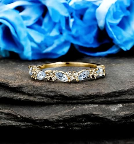 Marquise Cut Aquamarine Wedding Band – Vintage Matching Band for Women – Solid 14K Rose Gold Stacking Ring – Dainty March Birthstone Ring – Handmade Fine Jewelry 6