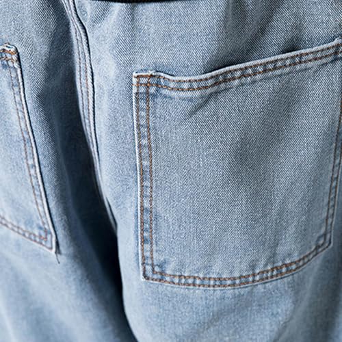 Men’s Casual Demin Pants Drawstring Elastic Waist Loose Fit Denim Pants Solid Washed Jeans Trousers with Pockets 5