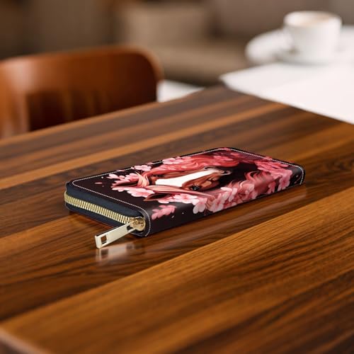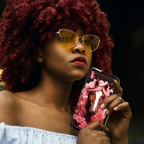HOT ! RFID-Blocking Zip Around Wallets for Women with Detachable Wrist Strap,Large Capacity Phone Holder with Card Organizer & Coin Pocket,Horse With Cherry Blossom