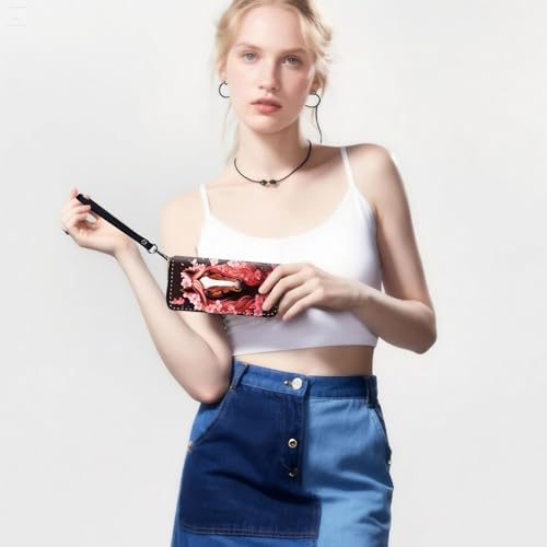 More information about RFID-Blocking Zip Around Wallets for Women with Detachable Wrist Strap,Large Capacity Phone Holder with Card Organizer & Coin Pocket,Horse With Cherry Blossom