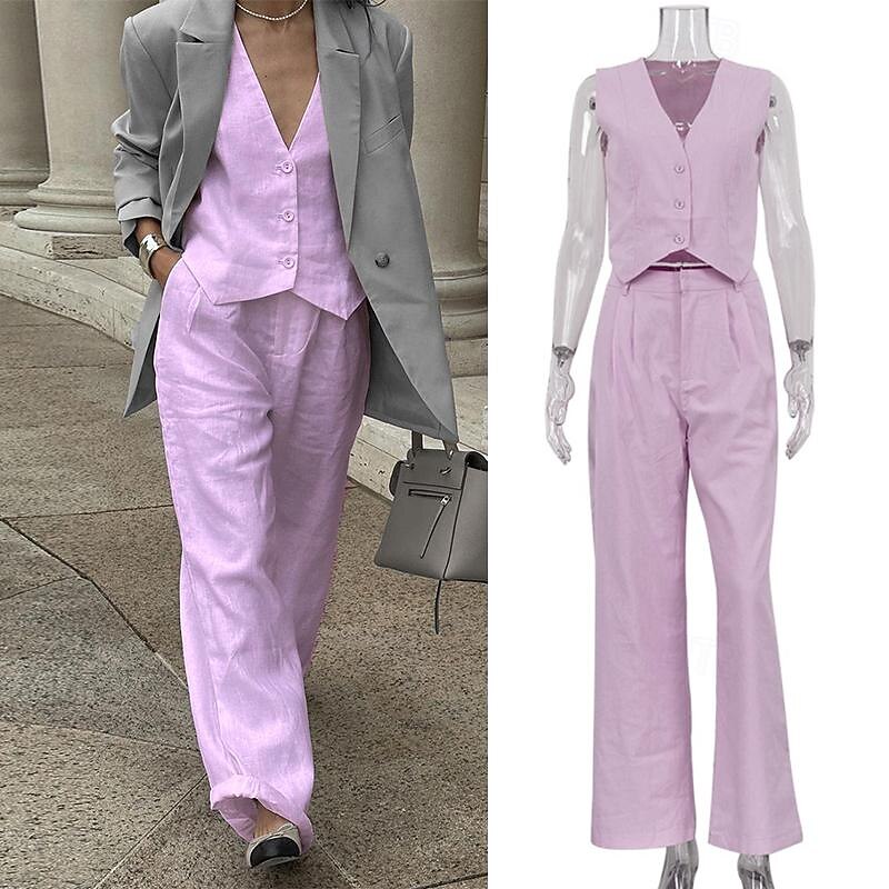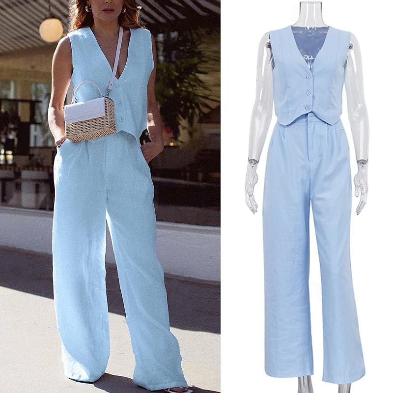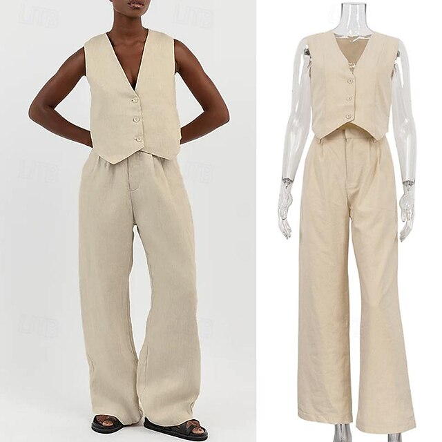 $48.99 - Set with Linen Vest Wide Leg Pants Trousers Women's Retro Vintage 1980s Outfits Casual Daily Spring Summer Beach Cozy 2025. Shop for cheap Outfits online? Buy at lightinthebox.com on sale today!