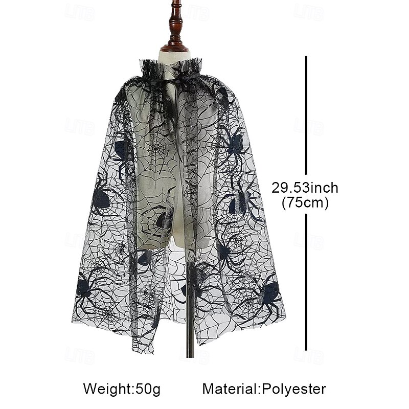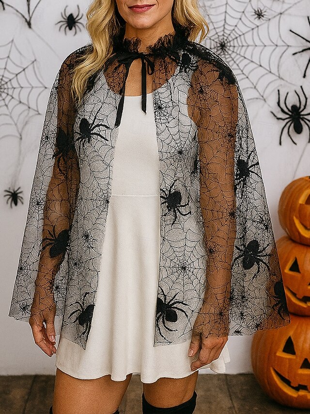 $14.99 - Women's Halloween Spider Web Cape – Sheer Black Mesh Shawl with Ruffled Collar, Lightweight Polyester Cloak for Costume Party, Cosplay and Witch Outfit 2025. Shop for cheap Halloween Accessories online? Buy at lightinthebox.com on sale today!