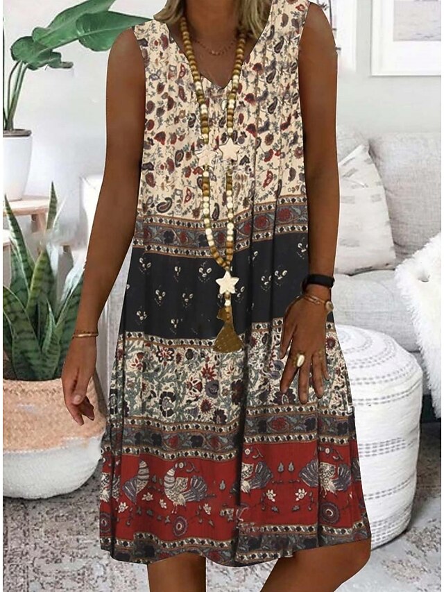 More information about Women's Mini Dress Casual Dress Petite Dress A Line Dress Slip Dress Bohemia Vintage Fashion Vacation Party Casual Regular Fit Floral Color Block Ditsy Floral Sleeveless V Neck Yellow